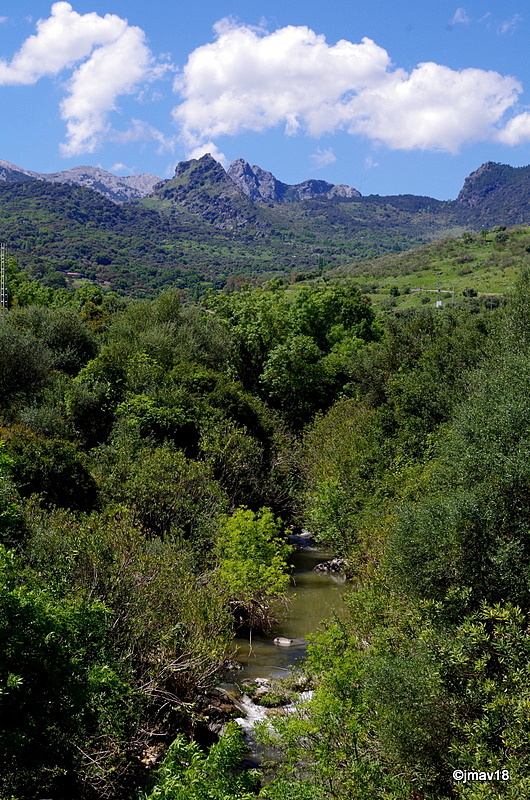 Una panorámica de la Sierra desde el pueblo de Montecorto (Málaga). A la izquierda el Macizo del Endrinal, el puerto del Boyar en el centro y a la derecha la Sierra del Pinar y sus adyacentes.